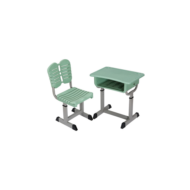 桌面:采用ABS注塑一次成型 椅面:PP工程塑料注塑一次成型 书包斗:采用全新PP工程塑料注塑一次成型 桌椅脚:30×60×1.5mm方管 25×50×1.5mm方管 脚套:采用全新PP工程塑料一次成型 升降结构:旋钮式升降 尺寸:450×650mm |